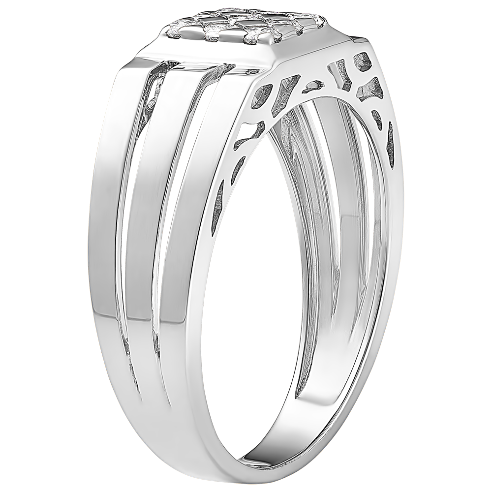 Sygnet z białego złota z wycięciami, pośrodku bogato wysadzany 9 diamentami.…