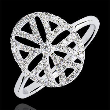 PRZEZNACZENIE NR 38Pierścionek Kwiaty - Białe złoto 750 - Diament ID : 4269