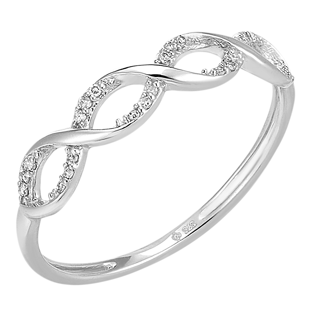 Pierścionek z przeplatającymi się pasmami z mieniącymi się brylantami w oprawie z białego złota.