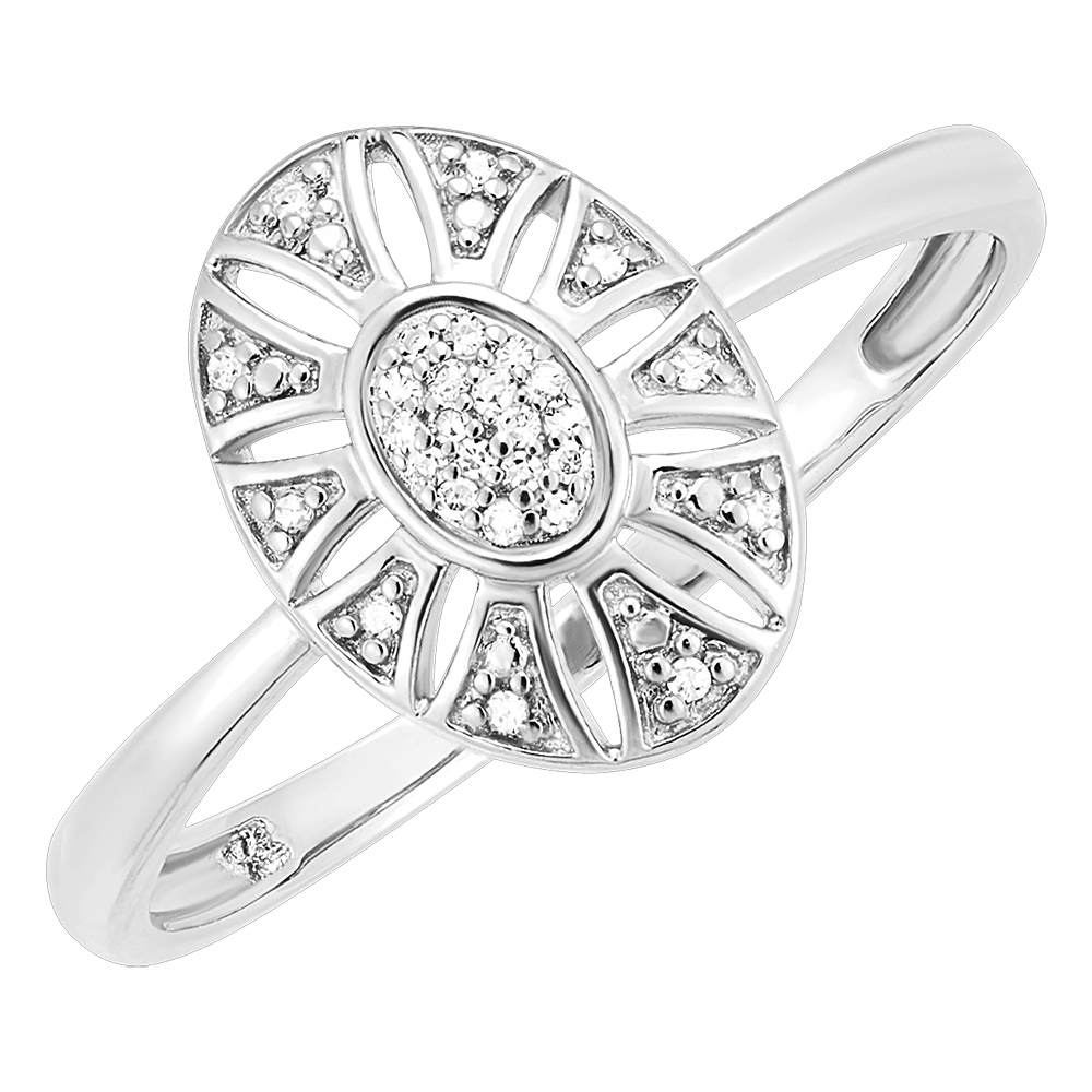 Pierścionek Radiance urzeka swoim słonecznym motywem: jego promienie z białego złota otaczają serce wysadzane diamentami.