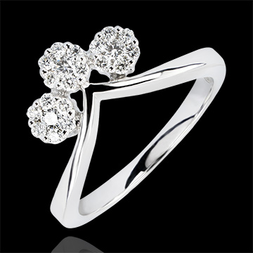 ŚWIEżOść NR 18Pierścionek zaręczynowy Kwiaty - Białe złoto 750 - Klaster naturalnych diamentów ID : 4143