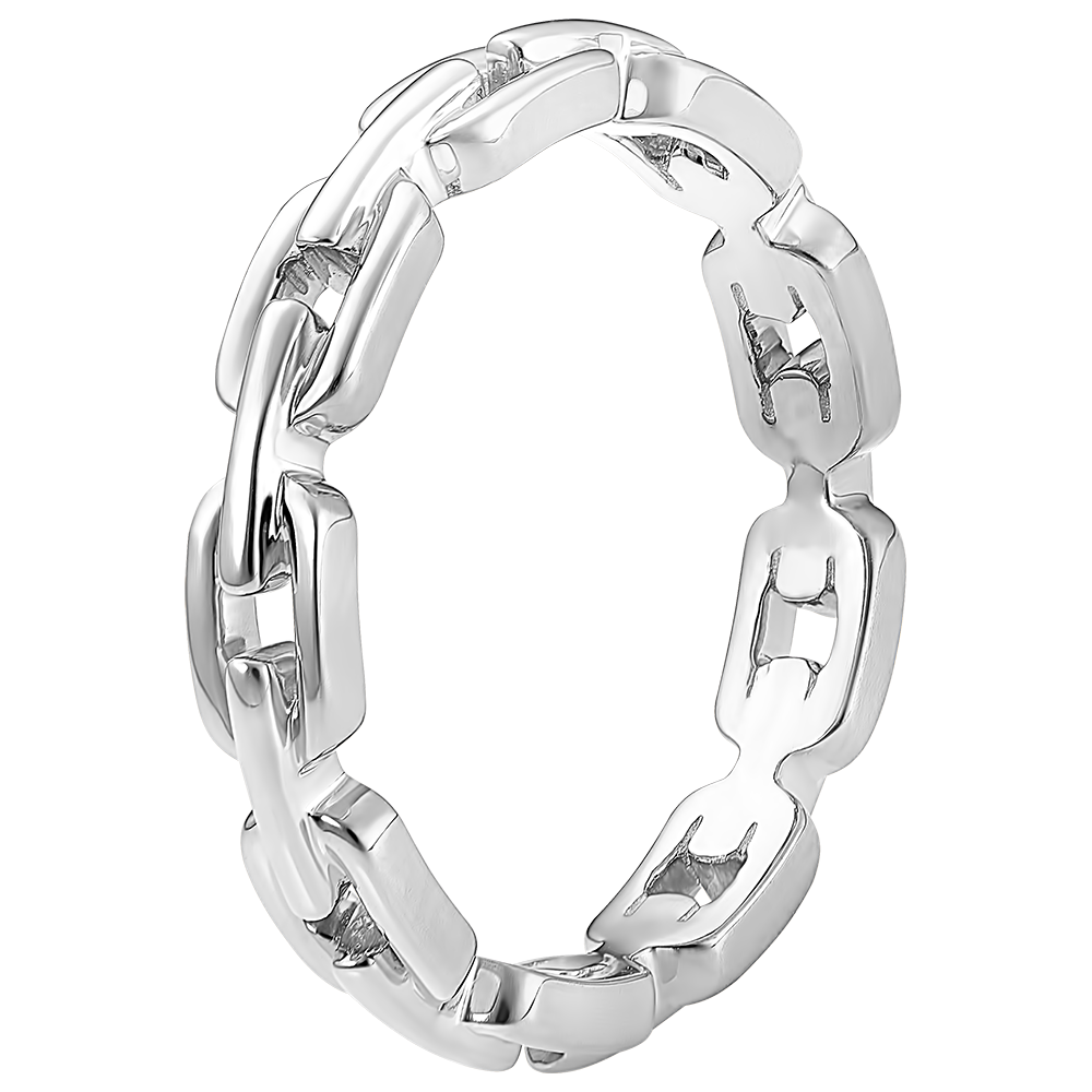 Pierścionek Wschodnie spojrzenie - Kubańskie ogniwo cienkie - 9 karatowe białe złoto