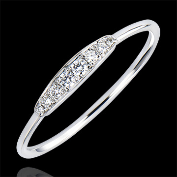 Nowoczesny i świeży pierścionek o minimalistycznym wzornictwie, podkreślony 8 diamentami osadzonymi w sposób prosty i podstawowy.