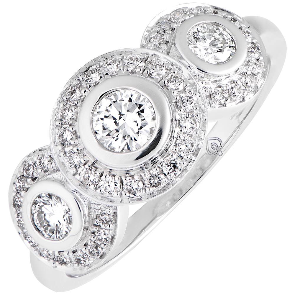 Trzy piękne aureole z diamentów w elegancki sposób przywołują epokę baroku.