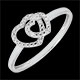 Pierścionek z dwóch serc z białego złota poddanego obróbce na wzór diamentu, wysadzany diamentami przywołującymi czułość i bliskość.