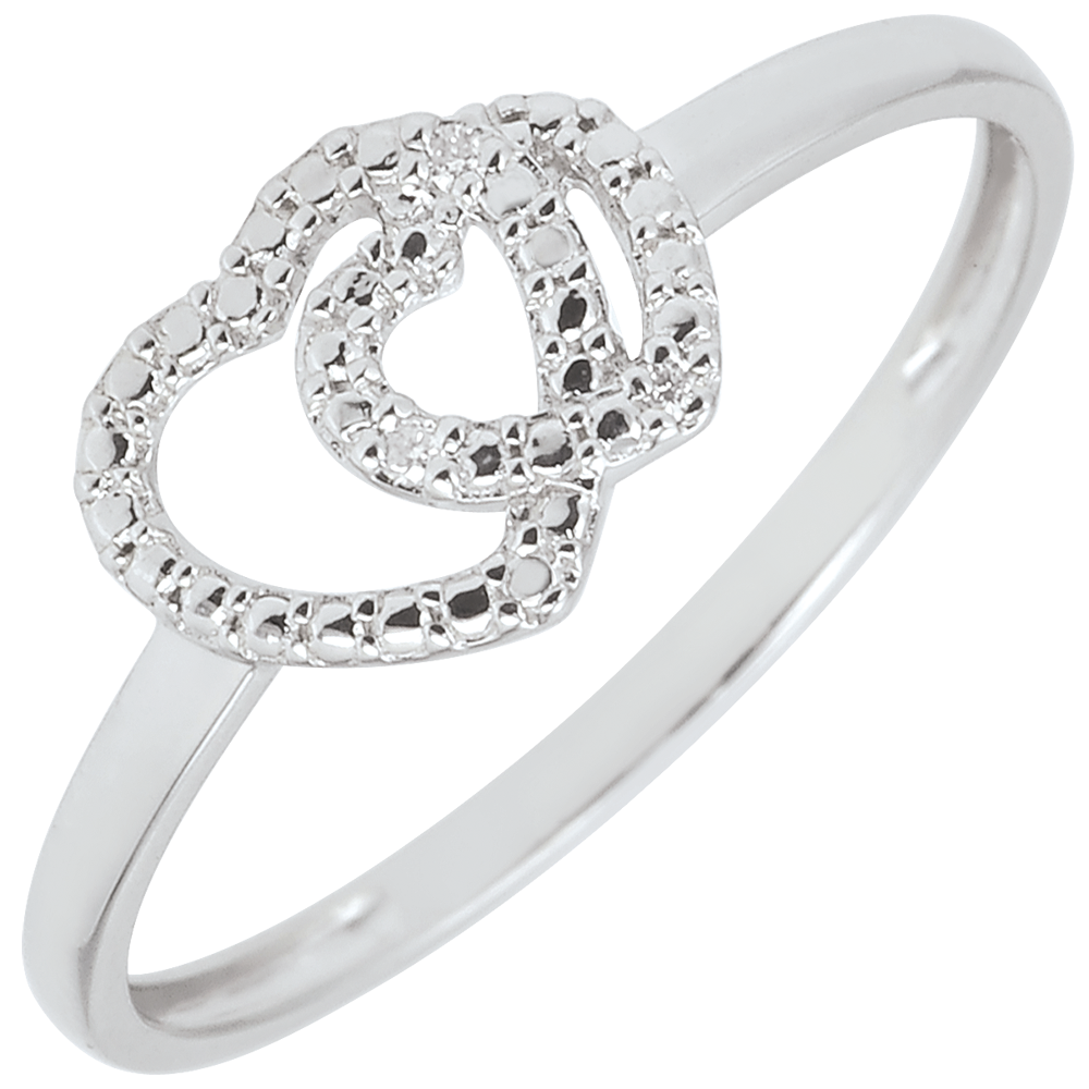 Pierścionek z białego złota 18-karatowego i diamentów - Sprzymierzone Serca