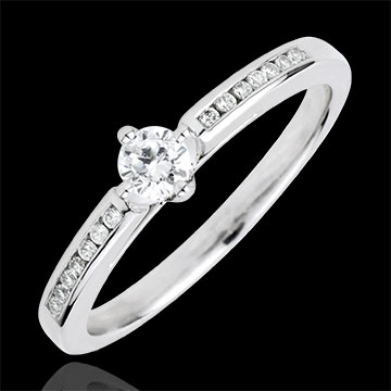 Pierścionek Boskość z jednym diamentem oprawionym w 4 krapy - złoto białe 18-karatowe