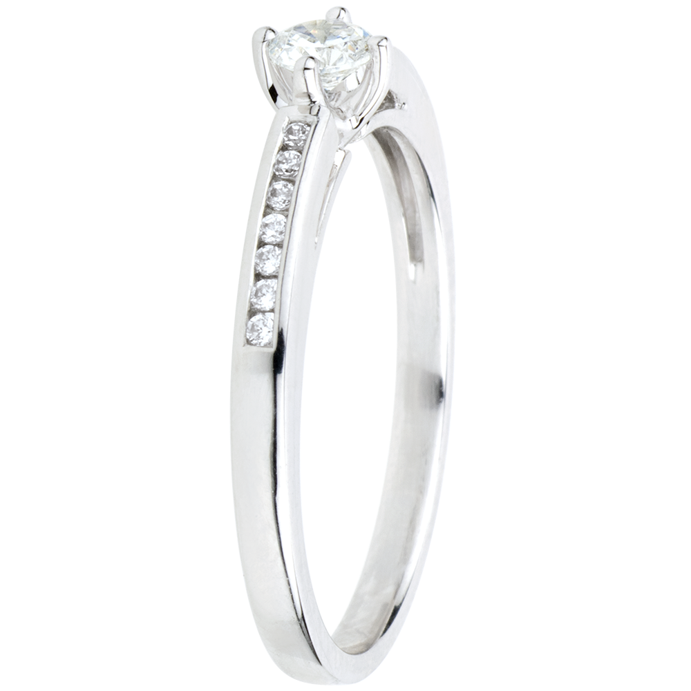 Pierścionek Boskość z jednym diamentem oprawionym w 4 krapy - złoto białe 9-karatowe