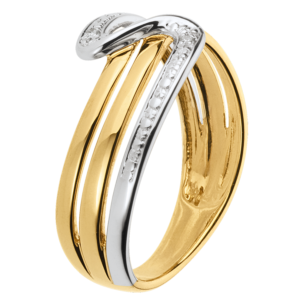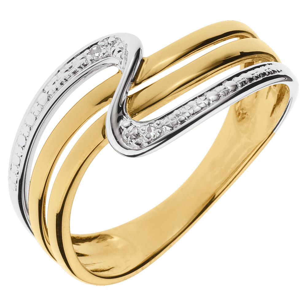 Pierścionek Cisza z białego i żółtego złota 18-karatowego