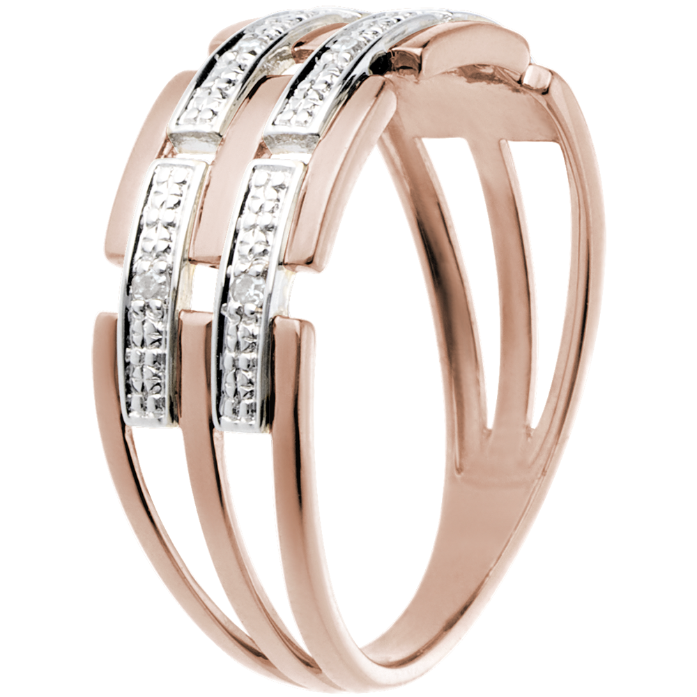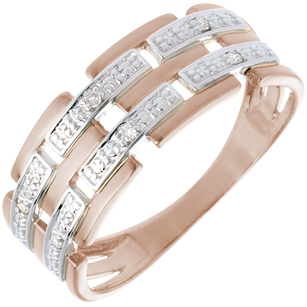 Doskonały splot listewek z białego złota i różowego złota - z diamentami w wyjątkowej oprawie.