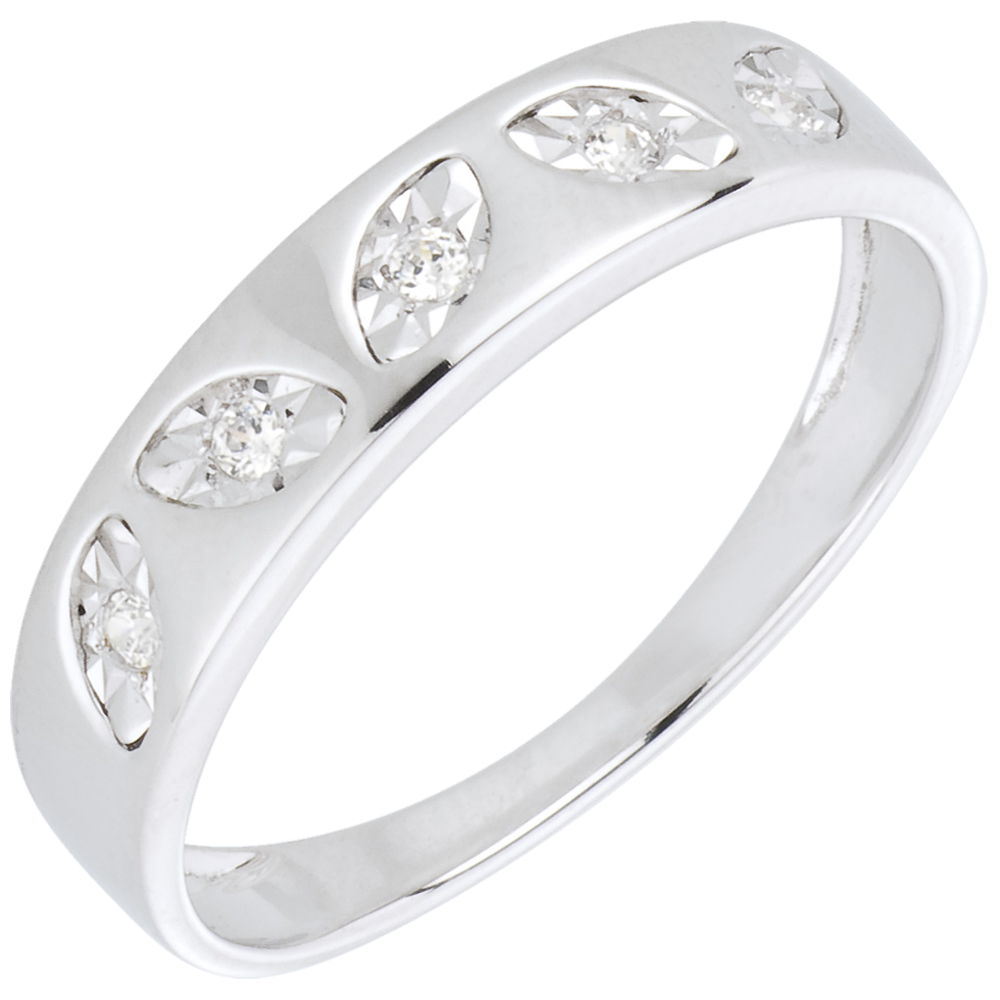 Pierścionek Drobne Liście z białego złota 18-karatowego i 5 diamentów