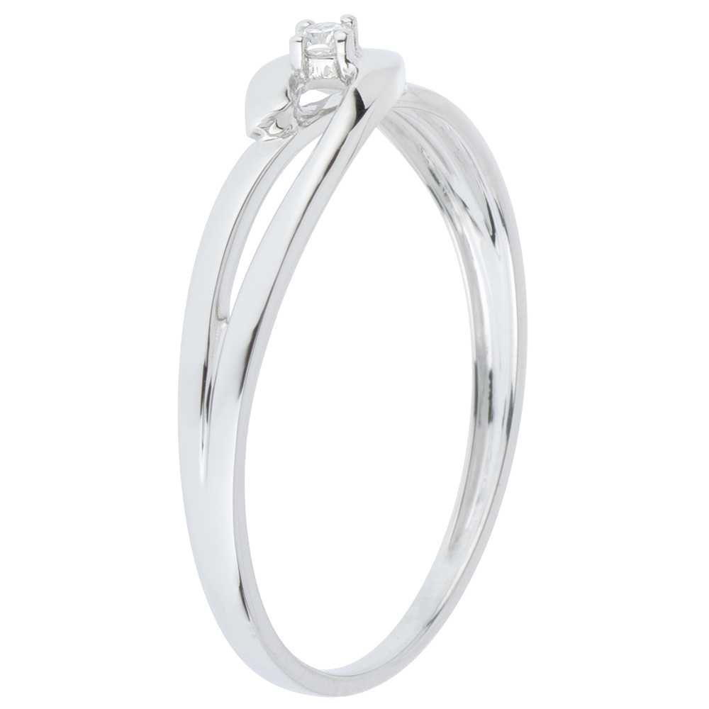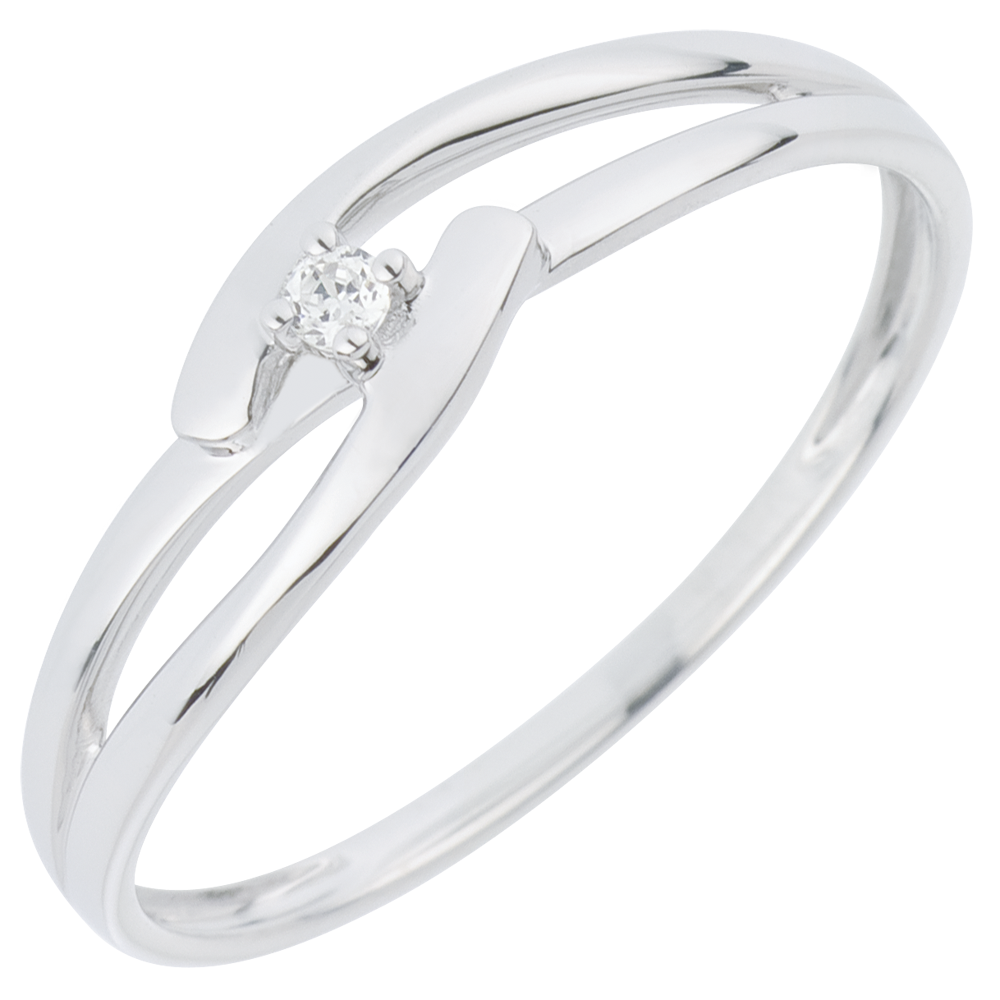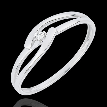 Pierścionek Drogocenne Gniazdo z jednym diamentem - Biały Związek - złoto białe 18-karatowe
