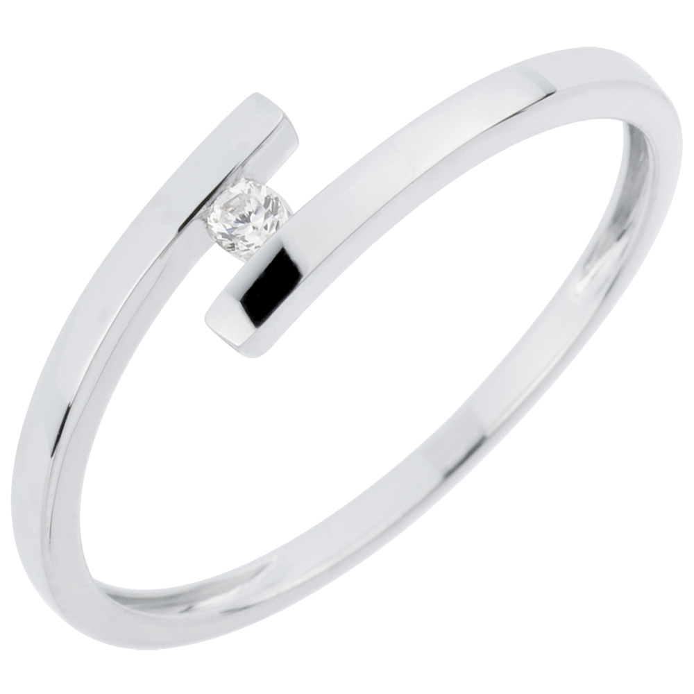 Pierścionek Drogocenne Gniazdo z jednym diamentem - Czysta Miłość - złoto białe 18-karatowe - diament 0,03 karata
