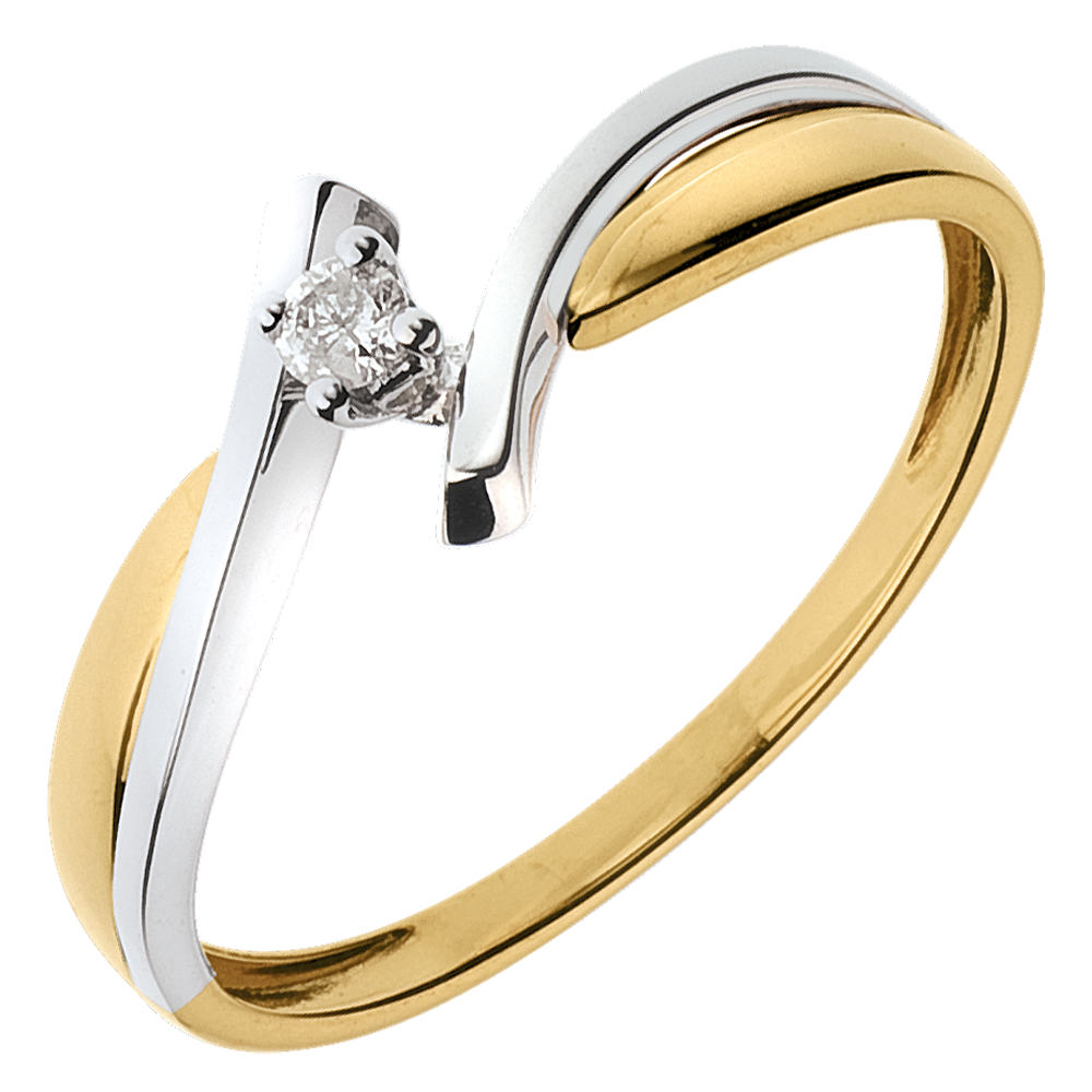 Pierścionek Drogocenne Gniazdo z jednym diamentem - Jupiter - diament 0,05 karata - złoto białe i złoto żółte 18-karatowe