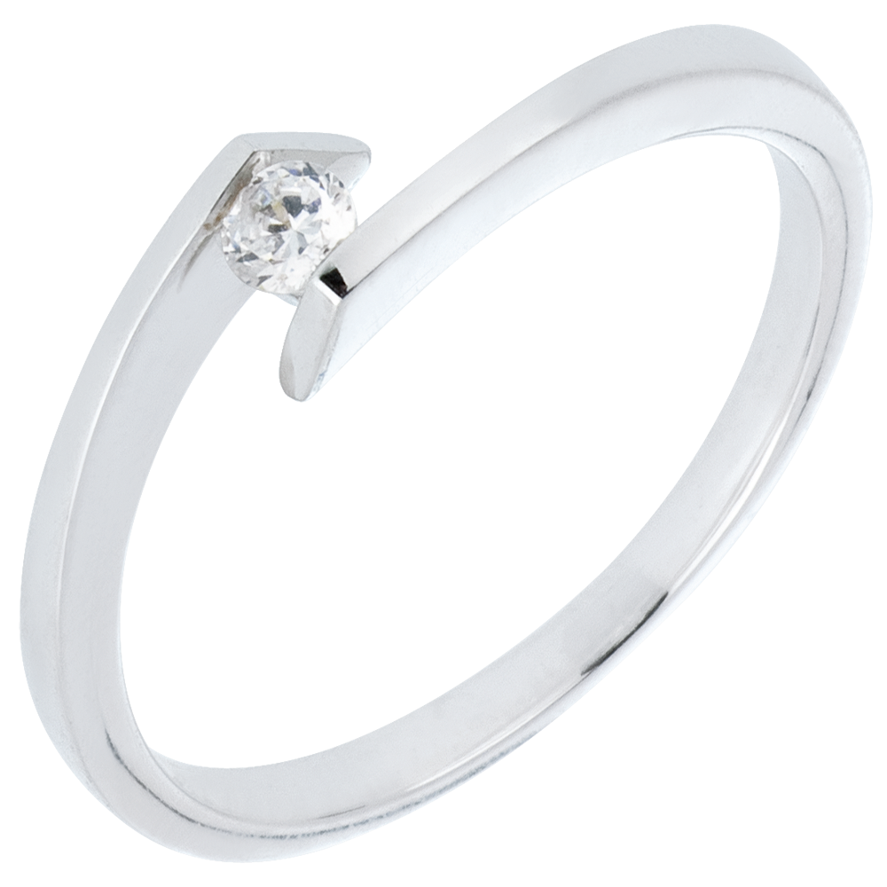 Pierścionek Drogocenne Gniazdo z jednym diamentem - Księżniczka Gwiazd - złoto białe 18-karatowe - diament 0,08 karata