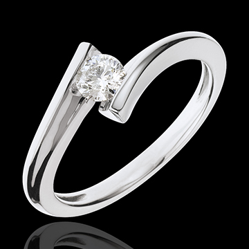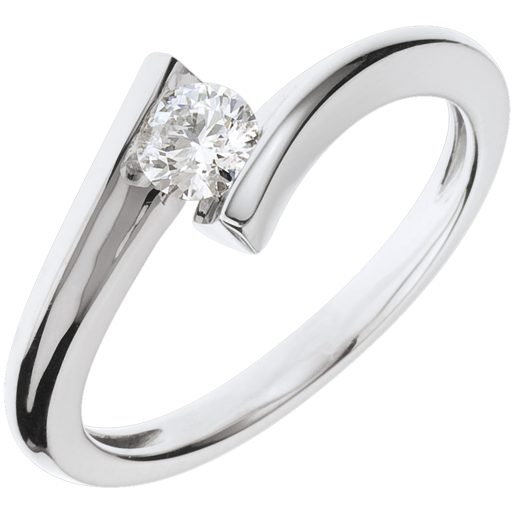 Pojedynczy diament w dynamicznej oprawie z białego złota. Rozświetlona wizja, przy której wszystko gaśnie.