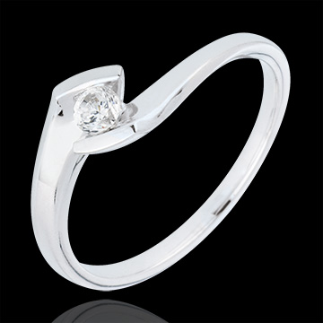 Pierścionek Drogocenne Gniazdo z jednym diamentem - Letni wieczór - złoto białe 18-karatowe - 0,12 karata