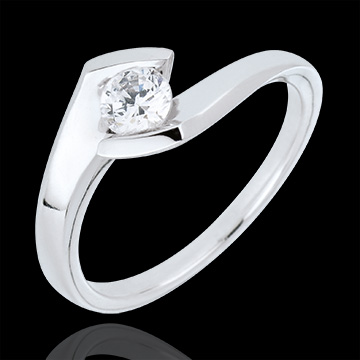 Pierścionek Drogocenne Gniazdo z jednym diamentem - Letni wieczór - złoto białe 18-karatowe - 0,32 karata