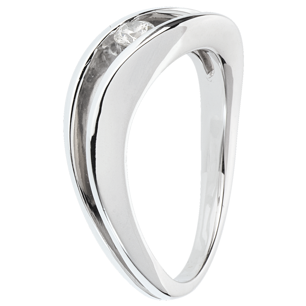 Pierścionek Drogocenne Gniazdo z jednym diamentem - Nocna Fala - złoto białe 18-karatowe