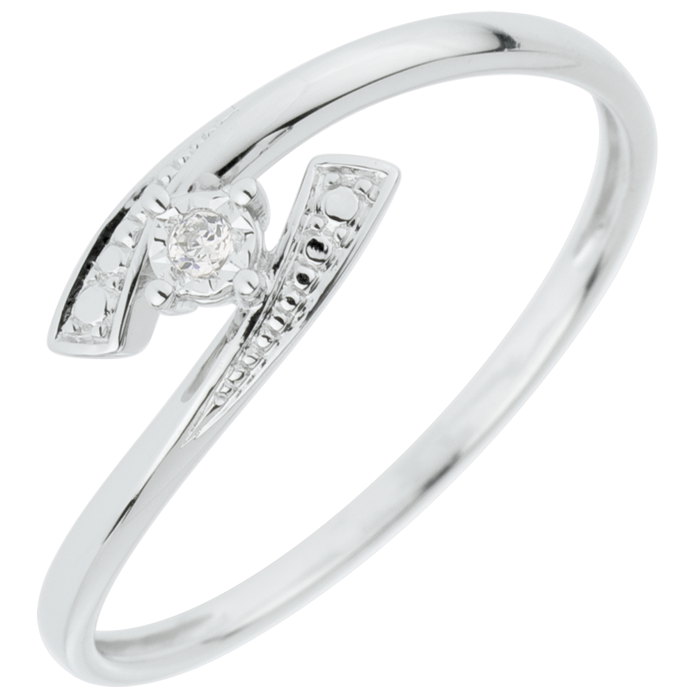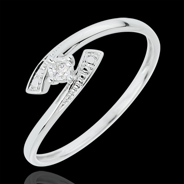 Pierścionek Drogocenne Gniazdo z jednym diamentem - Powiedz Tak - złoto białe 18-karatowe