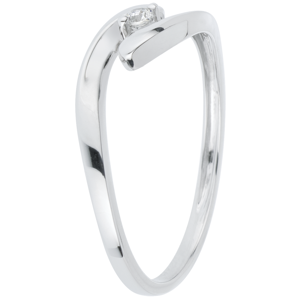 Pojedynczy diament między ramionami z białego złota tworzącymi oprawę.