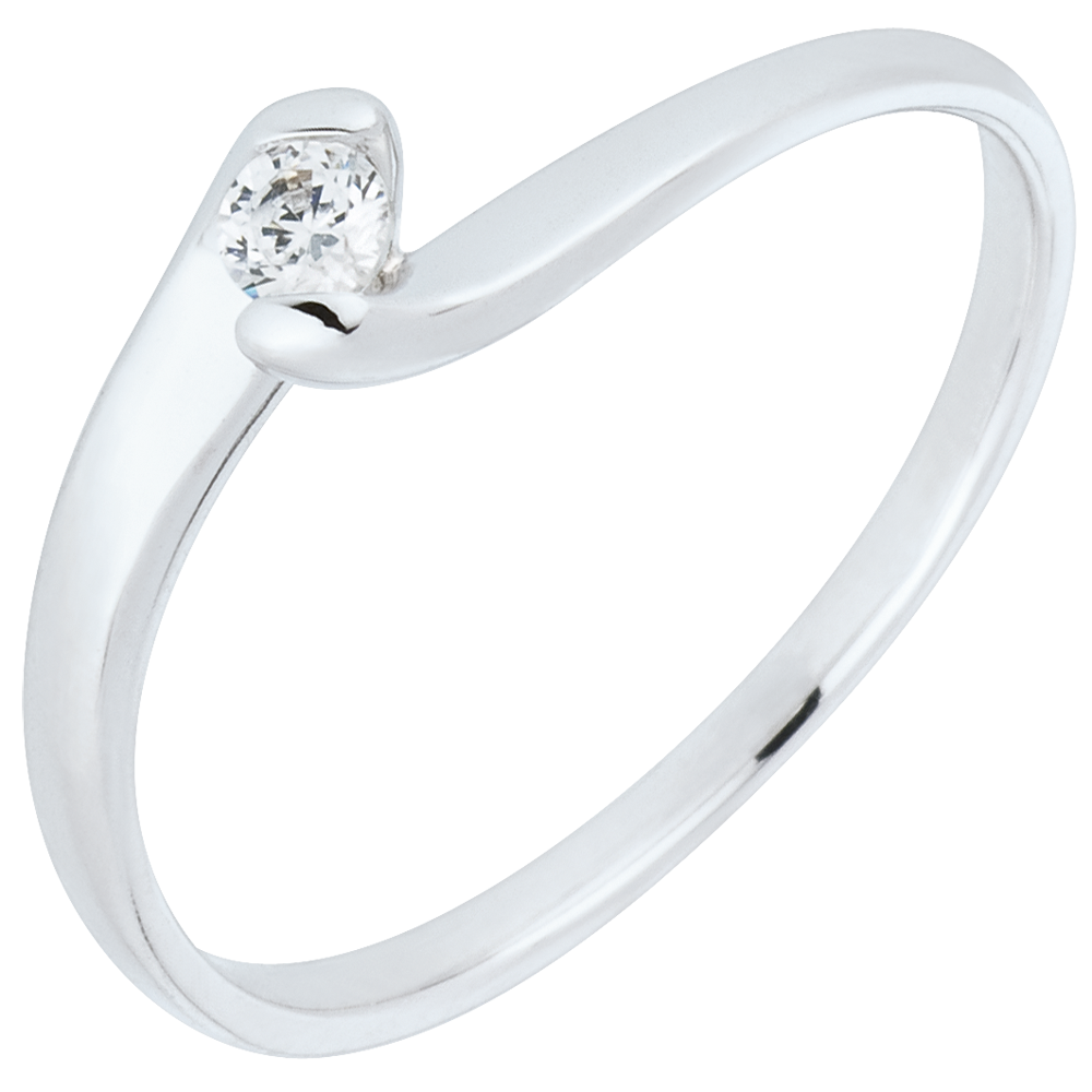 Pierścionek Drogocenne Gniazdo z jednym diamentem - Wieczna Pasja - złoto białe 9-karatowe - 0,08 karata