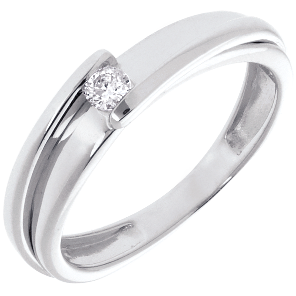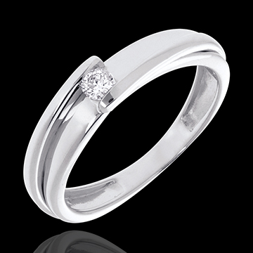 Delikatnie rozchylone dwa obrączki podkreślają centralny diament o masie 0,08 karata, symbol jedności i elegancji.