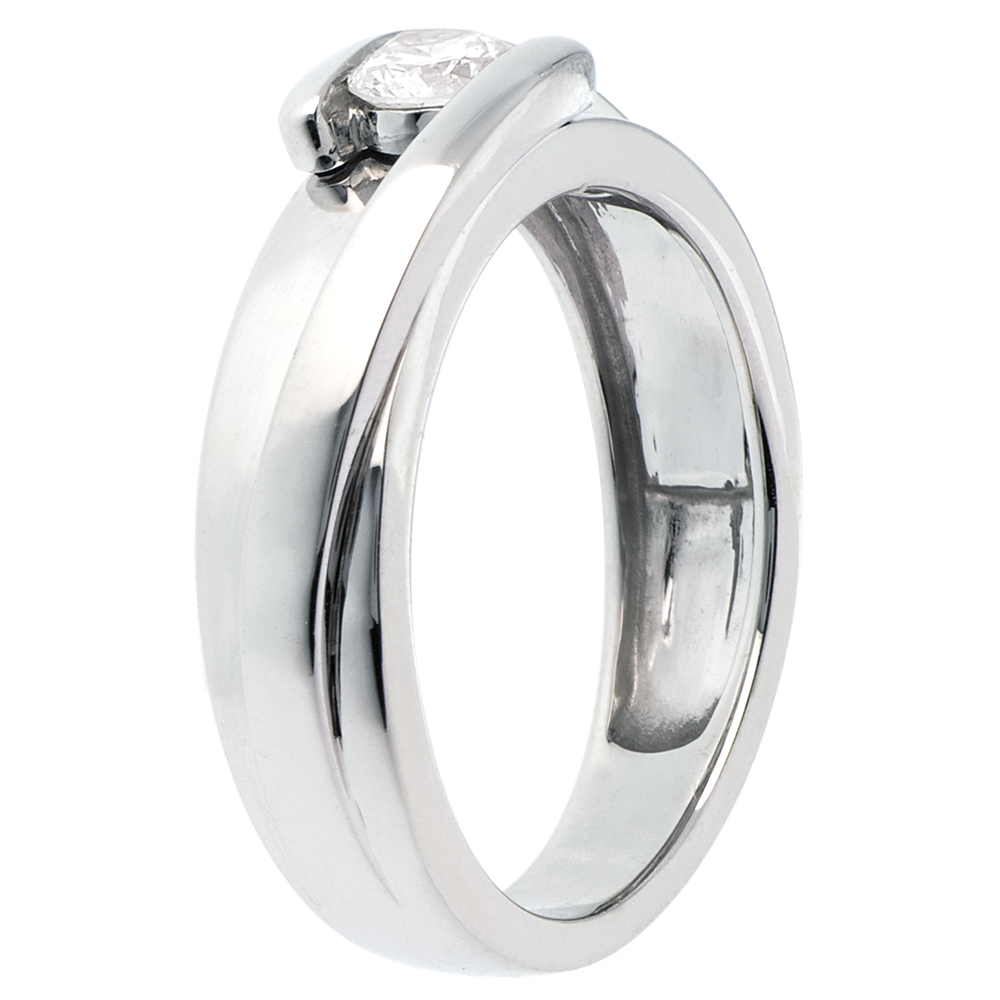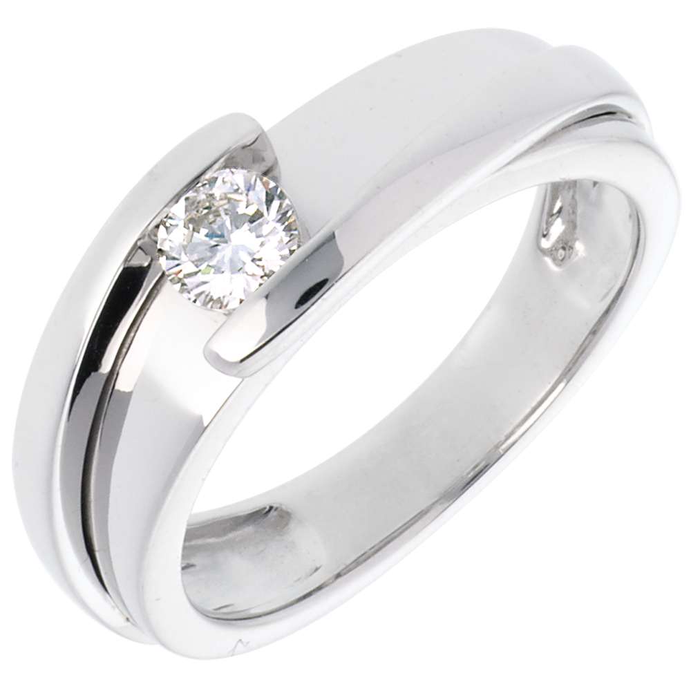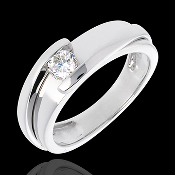 Pierścionek Drogocenne Gniazdo z jednym diamentem - Z zachodzącymi na siebie ramionami - złoto białe 18-karatowe (bardzo duży mo
