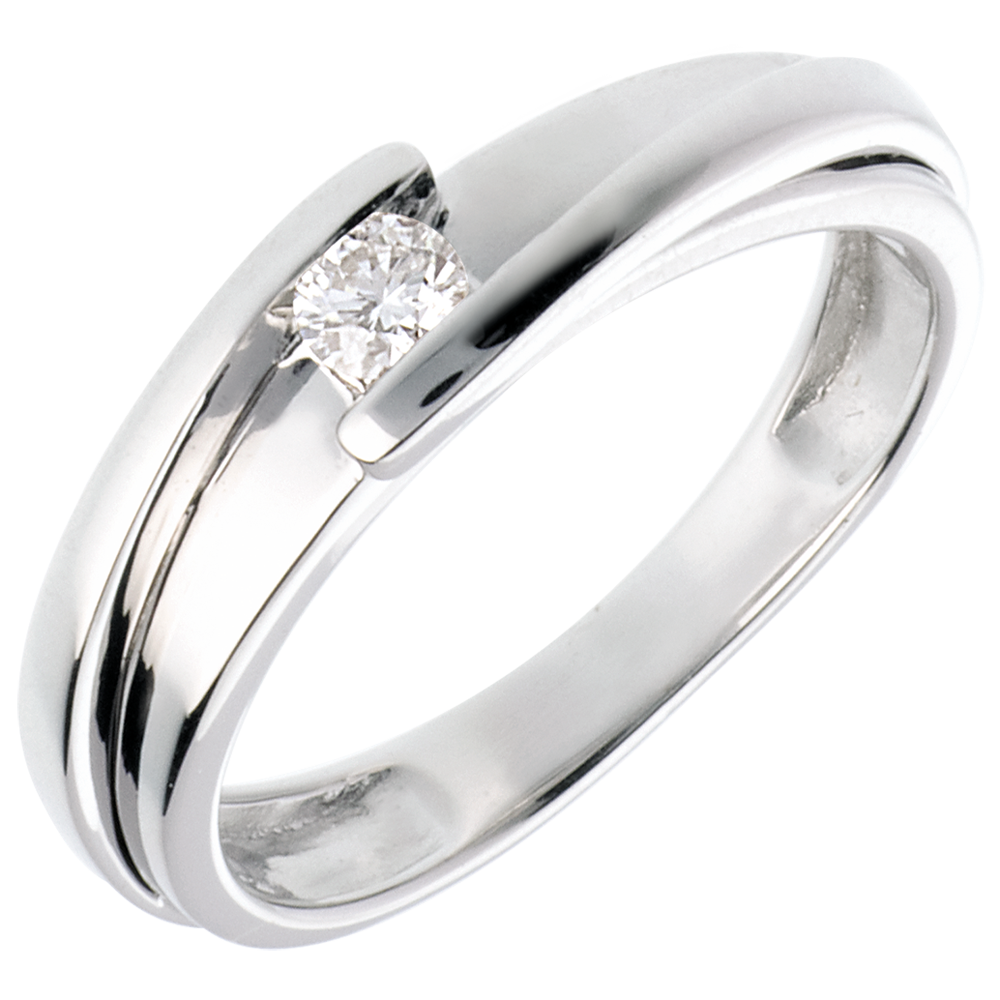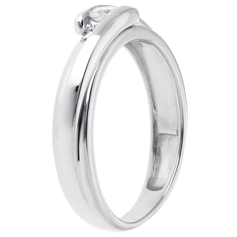 Pierścionek Drogocenne Gniazdo z jednym diamentem - Z zachodzącymi na siebie ramionami - złoto białe 18-karatowe - diament 0,13