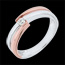 Pojedynczy diament jest oprawiony w obrączce z białego złota otoczonej dwoma ramionami z różowego złota.…