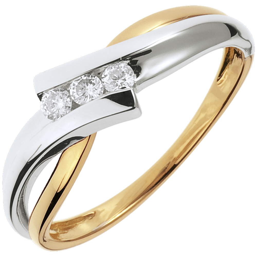Pierścionek Drogocenne Gniazdo z potrójnym diamentem - Solfeż - złoto białe i złoto żółte 18-karatowe - 3 diamenty