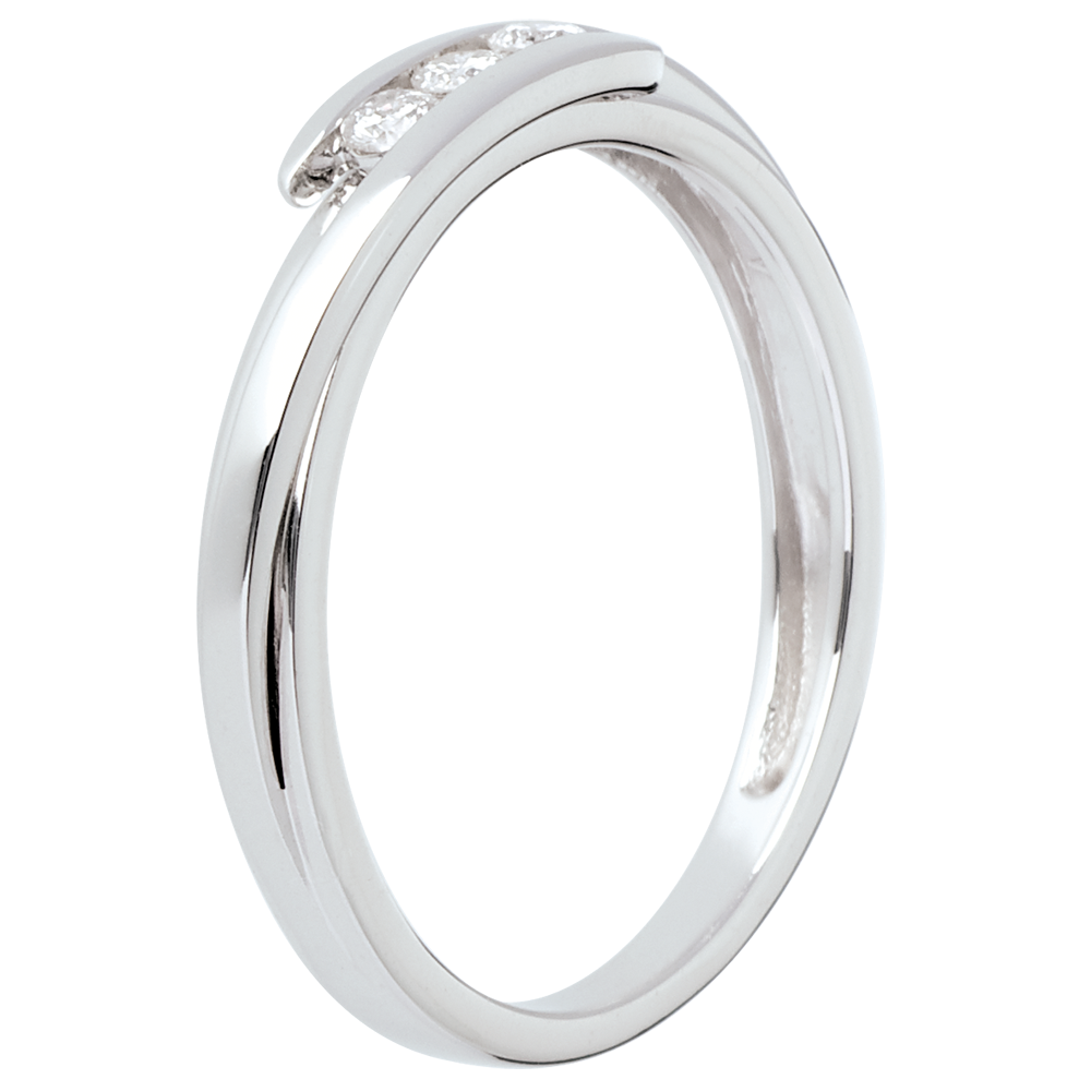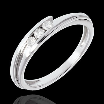Pierścionek Drogocenne Gniazdo z potrójnym diamentem - Z zachodzącymi na siebie ramionami - złoto białe 18-karatowe - 3 diamenty