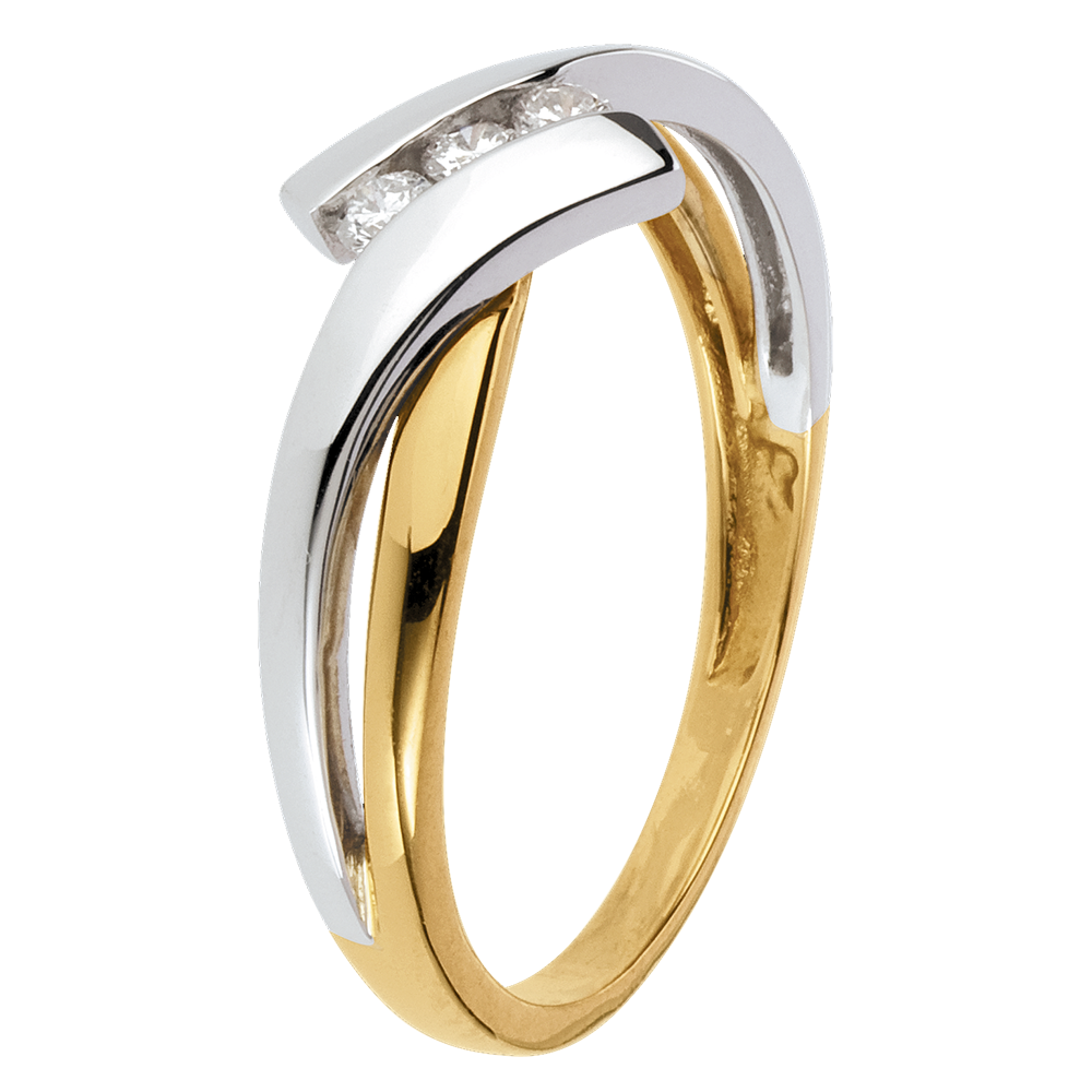 Pierścionek Drogocenne Gniazdo z trzema diamentami - dwa rodzaje złota - 3 diamenty - złoto białe i złoto żółte 18-karatowe