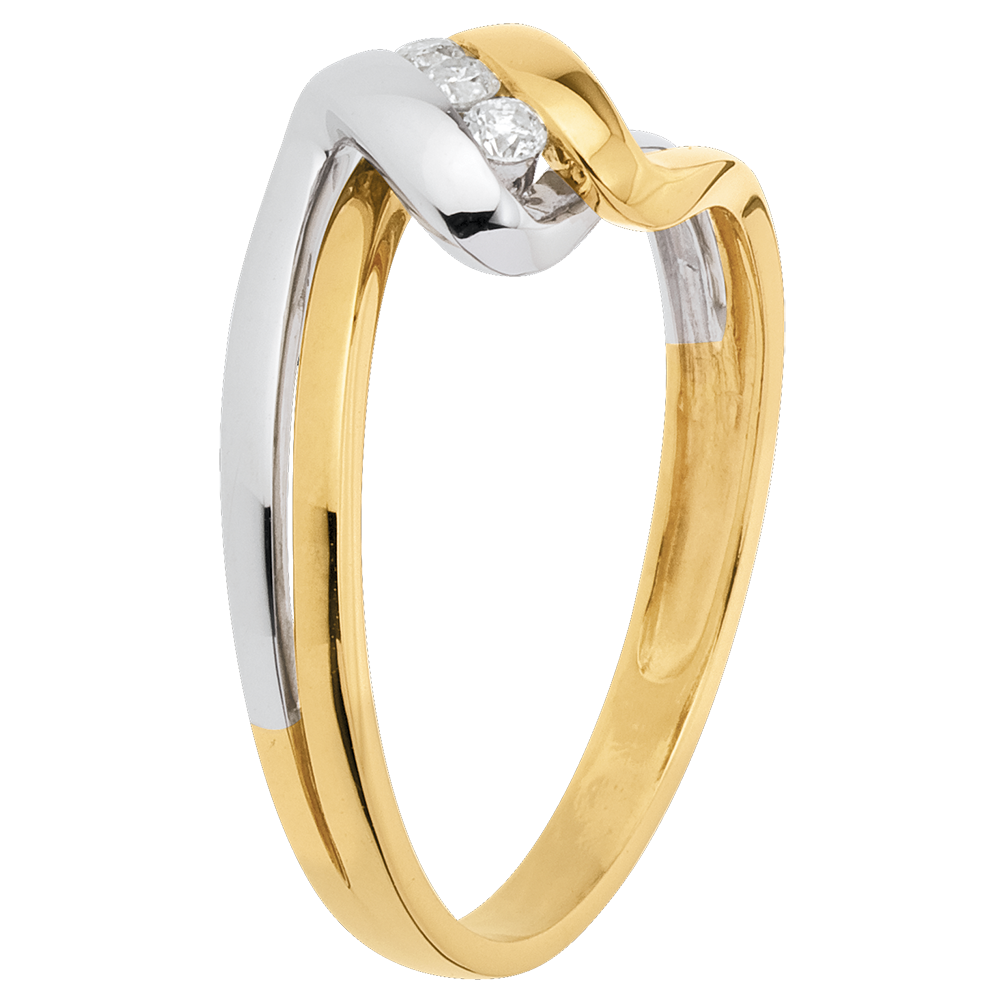 Pierścionek Drogocenne Gniazdo z trzema diamentami - Nieskończony Czas - 3 diamenty - złoto białe i złoto żółte 18-karatowe
