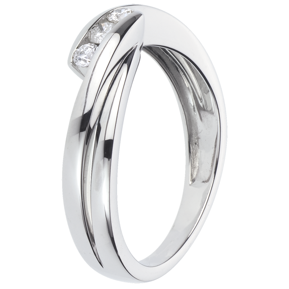 Pierścionek Drogocenne Gniazdo z trzema diamentami - Refren - złoto białe 18-karatowe - 3 diamenty