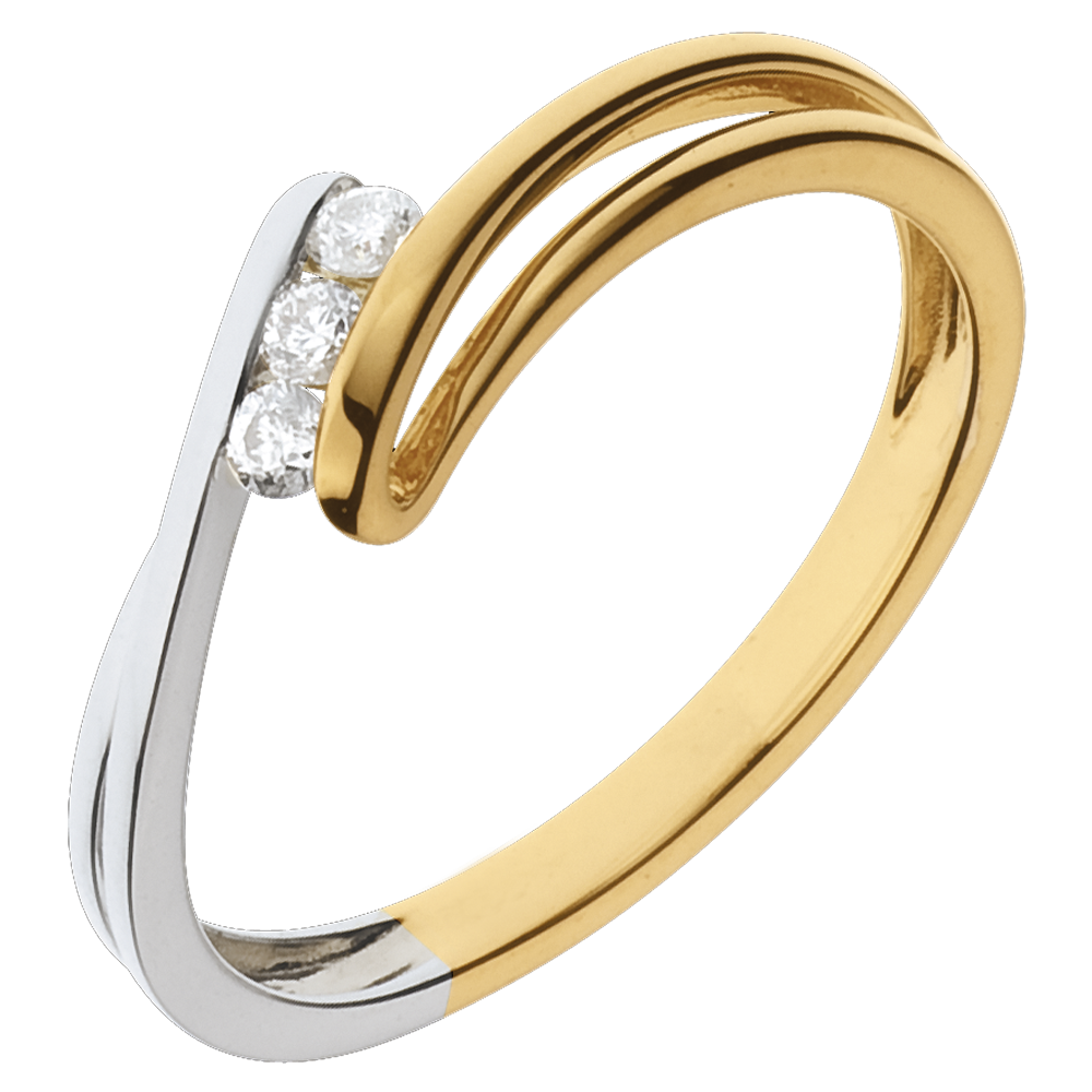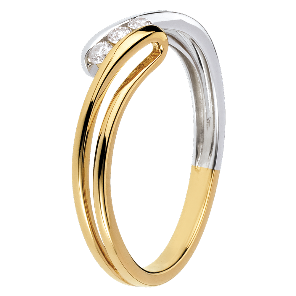 Pierścionek Drogocenne Gniazdo z trzema diamentami - Szron - 3 diamenty - złoto białe i złoto żółte 18-karatowe