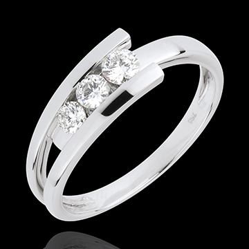 Pierścionek Drogocenne Gniazdo z trzema diamentami - Trianon - złoto białe 18-karatowe - 0,31 karata - 3 diamenty