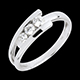 Trzy paski białego złota w formie obrączki zwieńczające trzy diamenty w prostej i oczywistej oprawie.