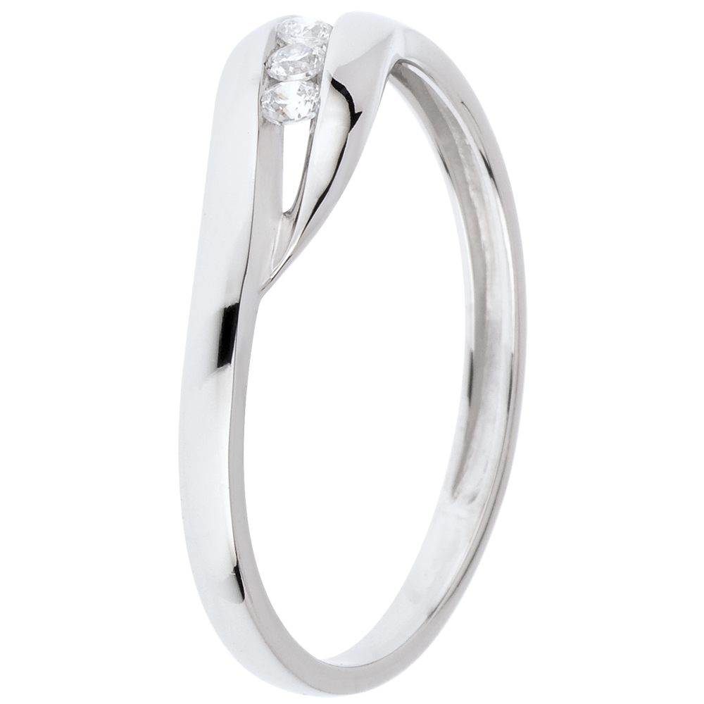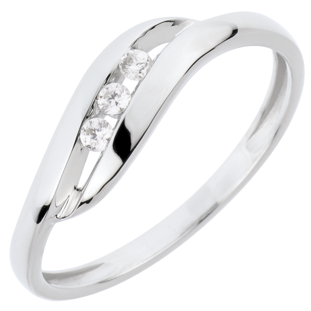 Pierścionek Drogocenne Gniazdo z trzema diamentami - Ukochana - złoto białe 18-karatowe