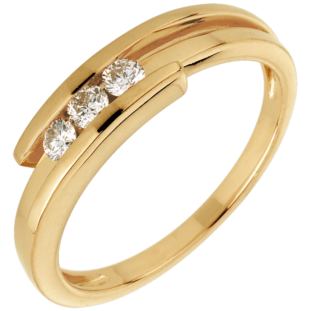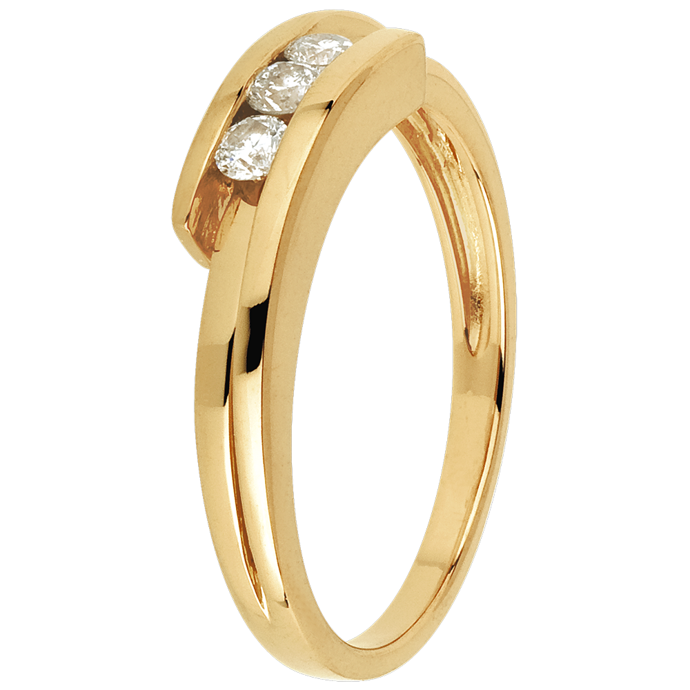 Pierścionek Drogocenne Gniazdo z trzema diamentami - Z zachodzącymi na siebie ramionami - złoto żółte 18-karatowe - 0,17 karata