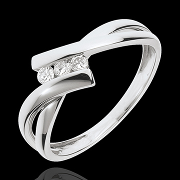 Pierścionek Drogocenne Gniazdo z trzema diamentami - złoto białe 18-karatowe - 3 diamenty