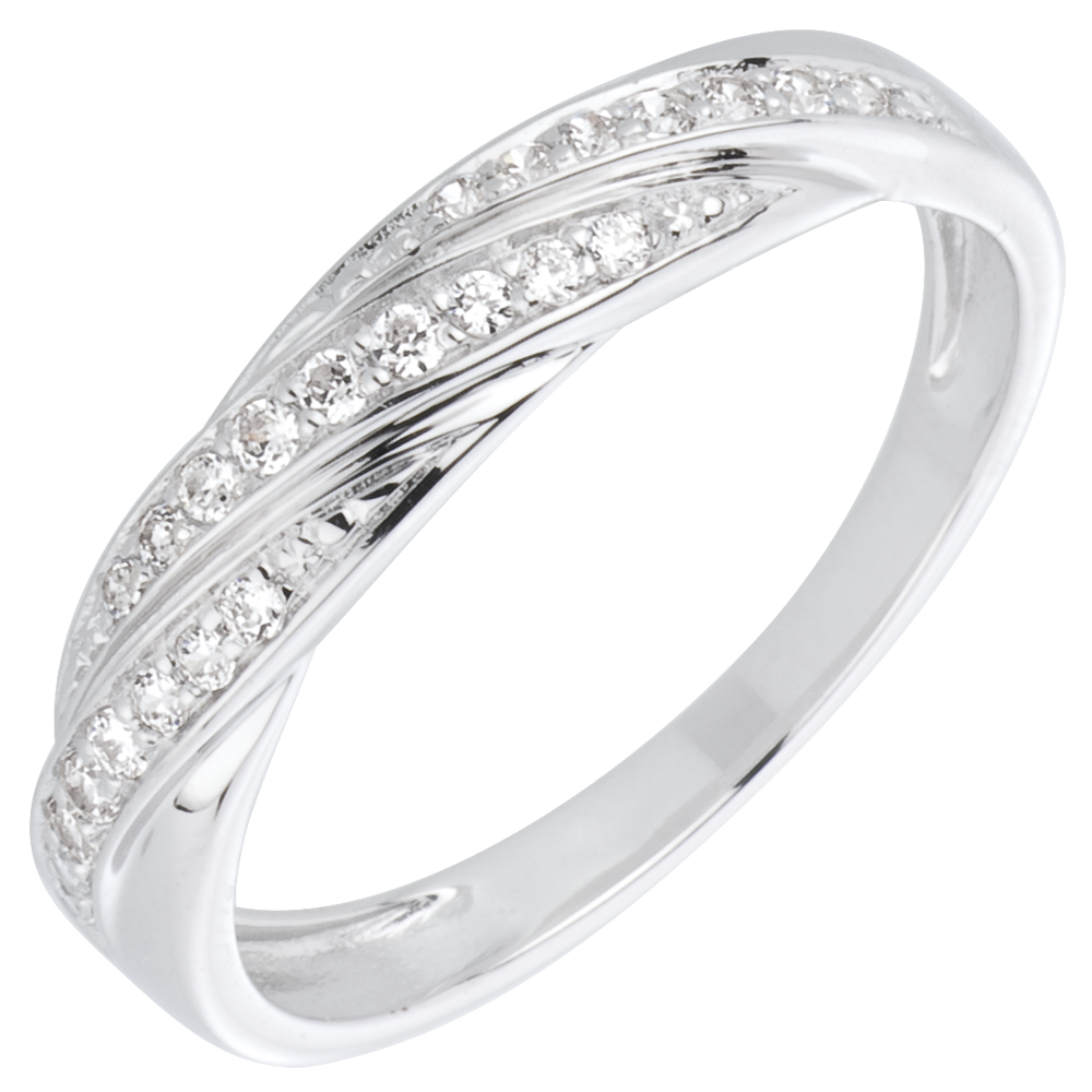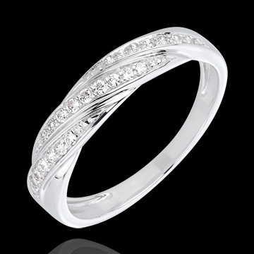 Pierścionek Drogocenny Splot z białego złota 18-karatowego i diamentów
