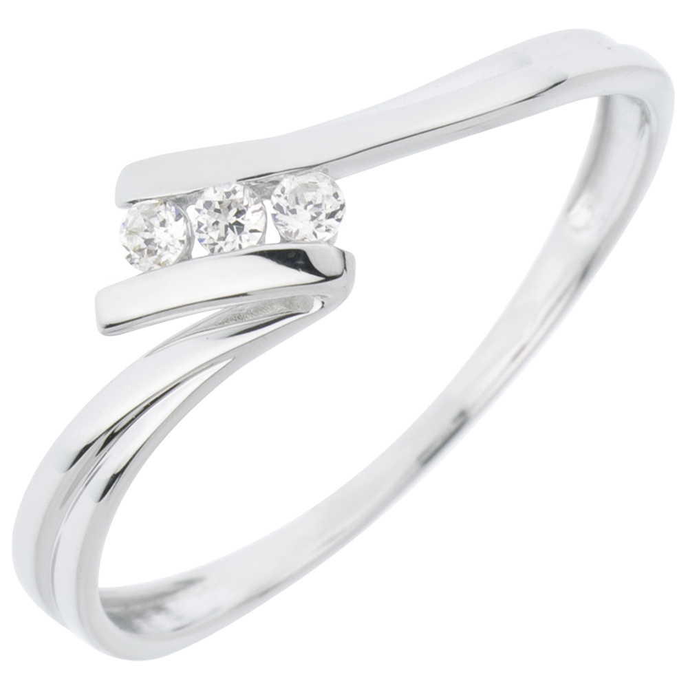 Pierścionek Euforia z trzema diamentami - złoto białe 18-karatowe