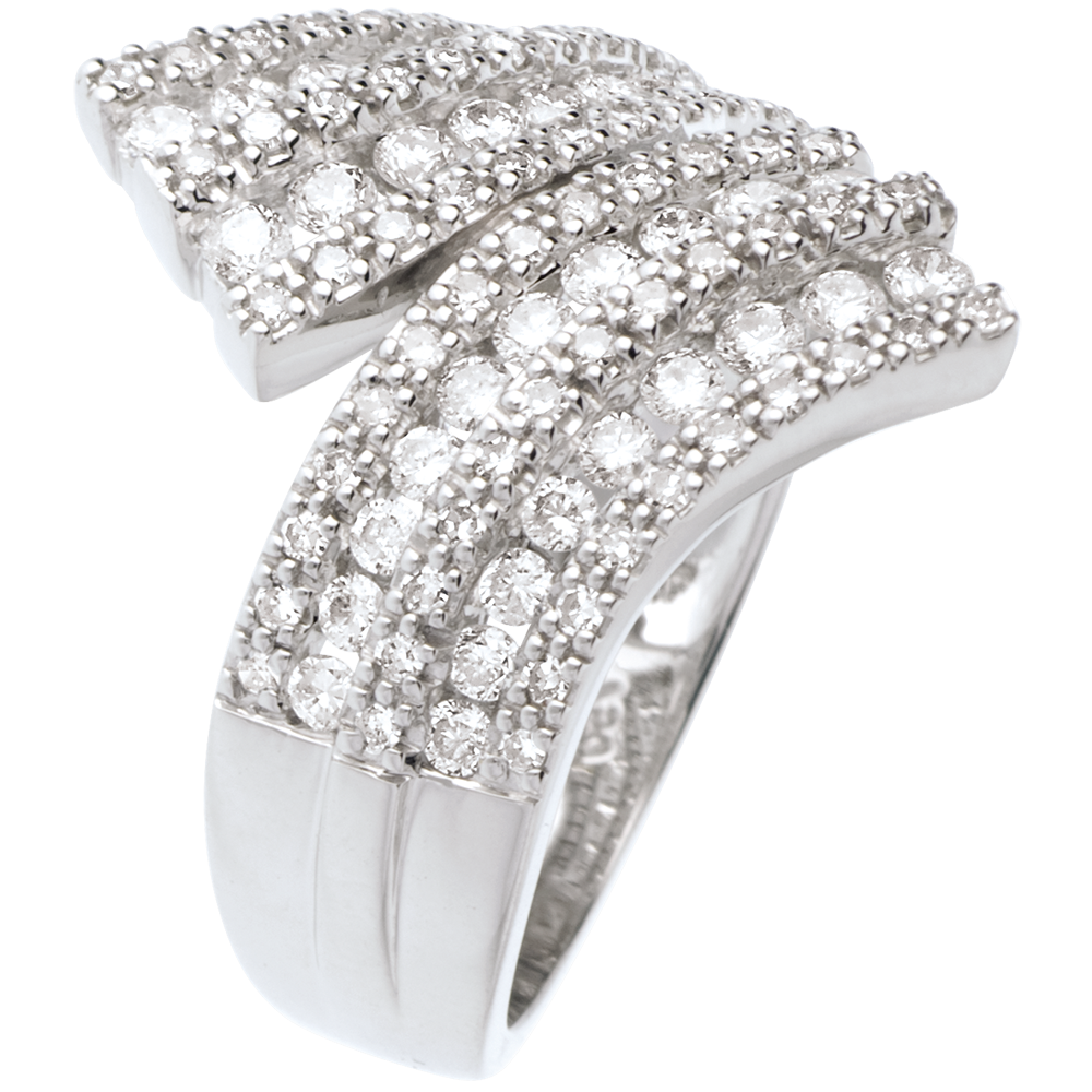 Pierścionek Feeria - Wysadzana wstęga - 1,1 karata - 108 diamentów - złoto białe 18-karatowe