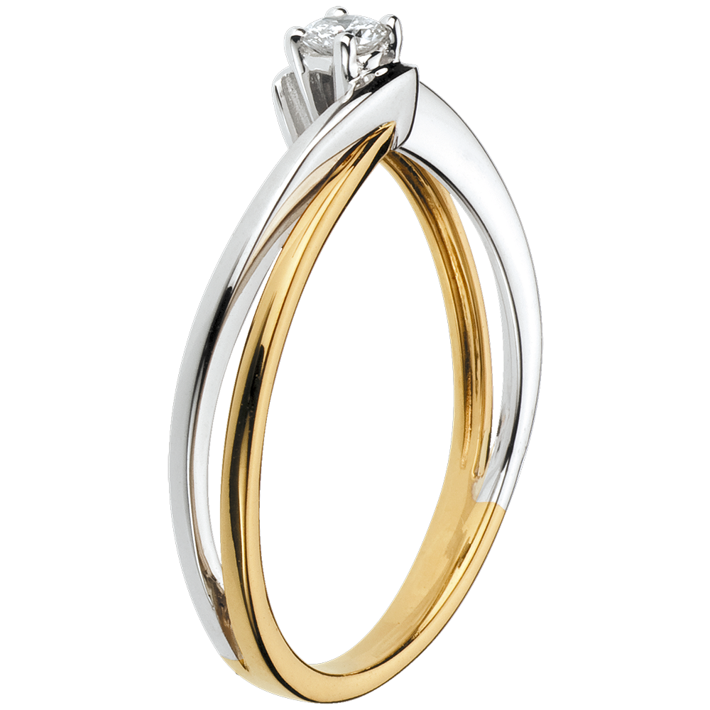 Pierścionek Filament z jednym diamentem - diament 0,08 karata - złoto białe i złoto żółte 18-karatowe