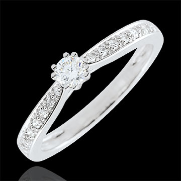 Pierścionek Garlane z jednym diamentem oprawionym w 8 krap - 0,15 karata - złoto białe 18-karatowe