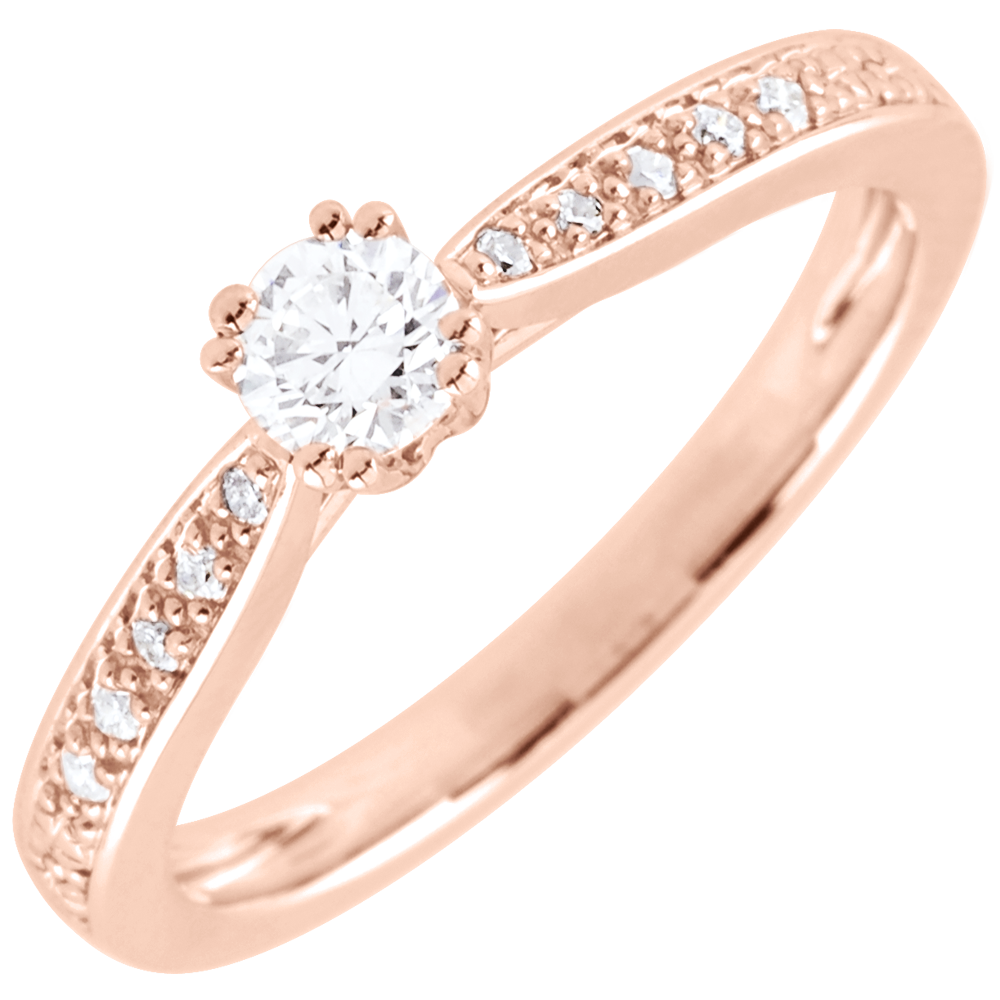 Diament środkowy w ośmiu krapach na wyrafinowanej obrączce usianej diamentami.