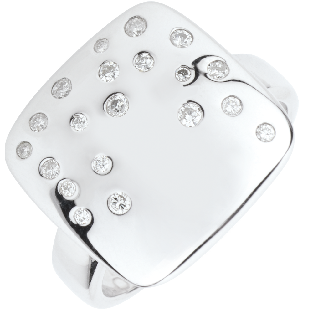 Wzór pavé gwiezdny nadaje mu nowoczesny i elegancki charakter, delikatnie otulając palec.