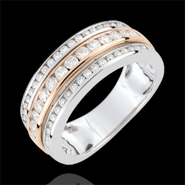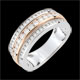 Trzy rzędy diamentów w różowym złocie tworzą efekt błyszczącej objętości uzyskanej przez oszlifowanie kamieni.