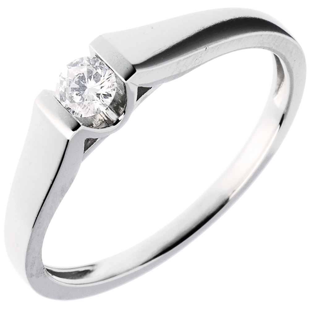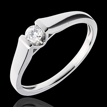 Pierścionek w kształcie łuku z białego złota 18-karatowego z jednym diamentem - diament 0,14 karata